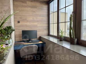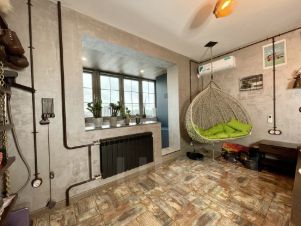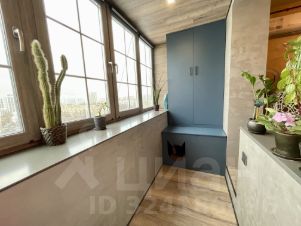 - На лоджии оборудовано рабочее место с розетками и интернетом, теплый пол, а также же зона отдыха и шкаф для хранения сезонных вещей.