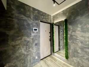 - В коридоре теплый пол, зеркало с подвесткой и рамкой из стабилизированного мха, видео-домофон, натяжной потолок с теневым профилем, дверь новая входная, вместительный шкаф во всю стену.