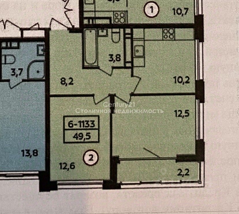 Общая площадь: 49.5 м²