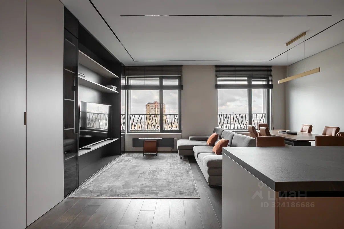 К продаже предлагается просторная квартира с панорамными окнами на 17 этаже в ЖК Shome с видами на парк Фили, Живописный мост, Крылатское с одной стороны, и с другой стороны на Кутузовский проспект.
