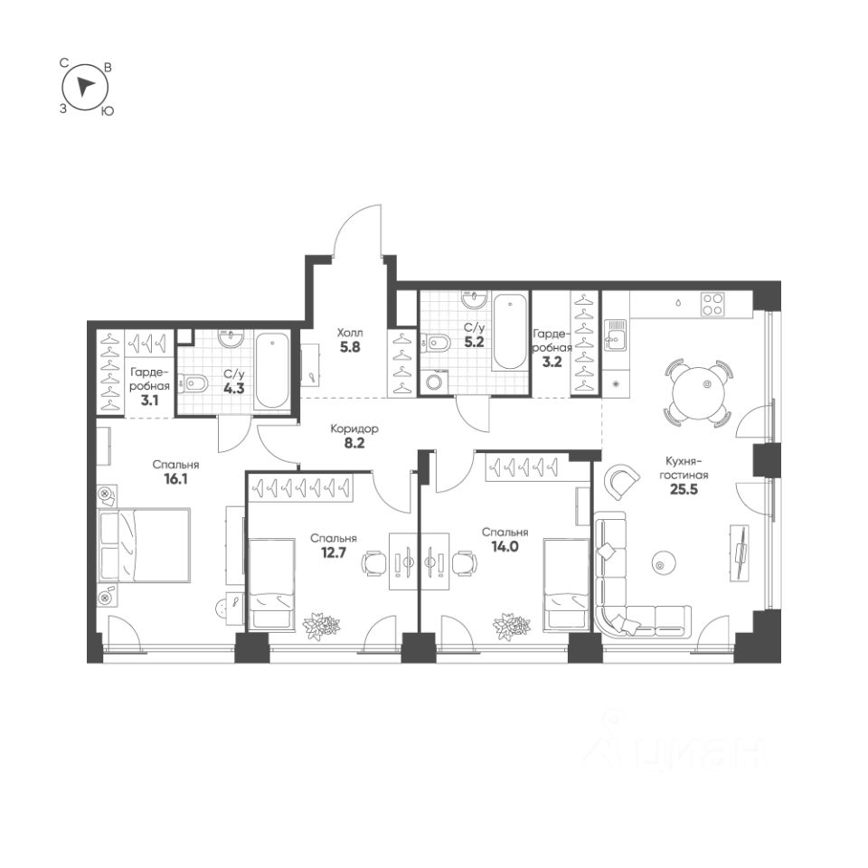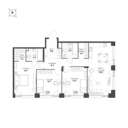 Продается квартира 74, по адресу г. Москва, ЮАО, ул. Автозаводская, вл. 23, корпус Жилой квартал Shagal, 4 очередь, 3 этап, корпус 2 в Shagal на 3 этаже, с площадью 98.1 м2.