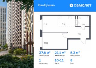Строим кварталы для жизни с заботой о будущем. Предлагается 1-комнатная квартира комфорт-класса 37,6 кв.м в корпусе 10-11 на 8 этаже, в ЖК "Эко Бунино"