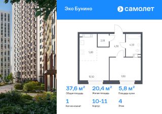 Строим кварталы для жизни с заботой о будущем. Предлагается 1-комнатная квартира комфорт-класса 37,6 кв.м в корпусе 10-11 на 4 этаже, в ЖК "Эко Бунино"
