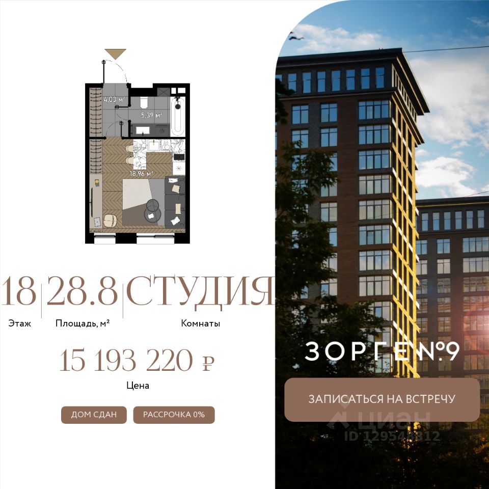 "Зорге 9" — готовые апартаменты бизнес-класса на Ходынке. 10 минут до Москва-Сити. Архитектура: 3 современных корпуса с фасадами в стиле архитектуры Нью-Йорка и с сервисами премиальных отелей, высотой до 23 этажа. Строгие линии, панорамные окна создают ощущение неподдельной роскоши и комфортной жизни в сердце мегаполиса. Проект награжден авторитетной премией European Property Awards. Резиденции: Свободная планировка, небольшая глубина этажа, огромные панорамные окна в пол до 3,6 м и высота потолков до от 3,3 до 4,3 м позволяют реализовать самые смелые концептуальные идеи и создать идеальный интерьер с учетом всех пожеланий. Вдохновляющие виды на город украсят ваш апартамент лучше любой картины. Есть возможность приобретения дизайн-проекта и полной меблировки апартаментов от партнеров девелопера. Расположение: 3 мин. пешком до парка Березовая роща 10 мин. пешком до Ходынского поля 10 мин. до ТЦ Авиапарк 30 минут до Шереметьево 10 мин до Москва-Сити или 1 станция до Москва-Сити 5 минут до ТТК 4 станции метро в шаговой доступности: 6 мин м. Полежаевская (фиолетовая ветка) 7 мин МЦК Зорге (МЦК) 7 мин м. Хорошевская (голубая ветка) 10 мин МЦК Хорошёво (МЦК) Благоустройство: Собственный парк 2 га с амфитеатром и поющими фонтанами. В парке высажено 136 деревьев и более 11 000 кустов и мелких растений из немецких питомников. Площадка для йоги и воркаут-зона со спортивными площадками. Теннисные столы и детский плейхаб Две башни Авторское гранд-лобби В лобби предусмотрена лаундж-зона, чайная с камином, комната для хранения велосипедов и колясок. Доступ по системе FACE ID. В отделке лобби и лифтовых холлов использован декоративный камень итальянского бренда Atlas Concorde Пентхаусы На верхнем уровне комплекса расположены роскошные просторные пентхаусы с высотой потолка до 4,2 метра и панорамными окнами до 3,6 метров, открывающими великолепные виды на столицу. Пентхаусы с выходами на собственные приватные террасы на кровле, площадью от 150 кв. м являются жильем high-уровня, демонстрирующим высокий статус владельца.