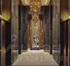 Просторное гранд-лобби с высотой потолка 7м. Дизайн Гранд Лобби выполнен в стиле классических люксовых отелей с использованием премиальных материалов.