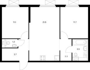 Продаётся 2-комн. квартира площадью 58,1 кв.м на 3 этаже 33 этажного дома (Корпус 1.1, Секция 1) проекта ПИК Лосиноостровский парк. Светлый просторный подъезд на уровне земли, функциональная планировка, большие окна, c отделкой.