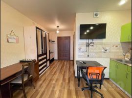 Квартира выполнена в стиле "евроремонт". В студии есть современная мебель и вся необходимая техника. Планировка продумана до мелочей: просторная комната и совмещенный санузел. Также имеется лоджия, где можно наслаждаться утренним кофе.
