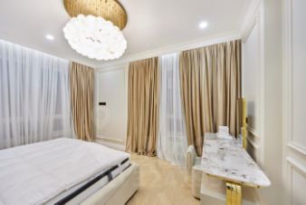 Светлая, с новой высококлассной отделкой в неоклассическом стиле, меблированная и укомплектованная всей необходимой техникой 3-ком. квартира продаётся в ЖК бизнес-класса "Академика Павлова