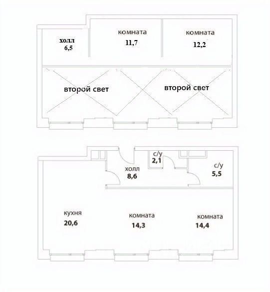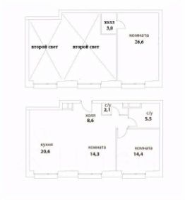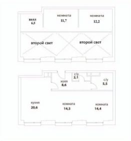 Площадь квартиры: 90,7 кв.м. Особенность: двухуровневая планировка. Цена: 56,5 млн рублей (возможен торг)