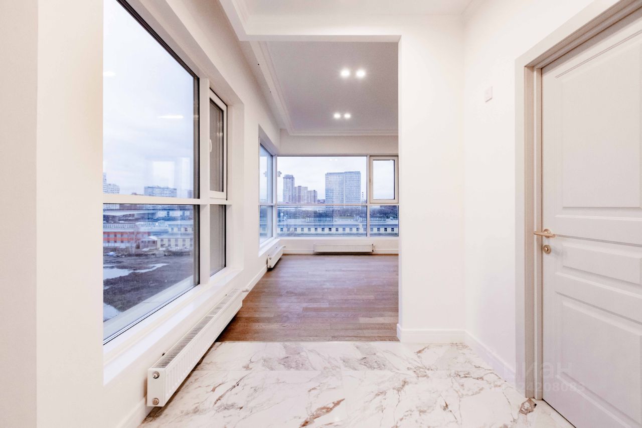 Это лучшая студия с угловой планировкой, расположенная на 5-м этаже с панорамными окнами, начиная с прихожей.