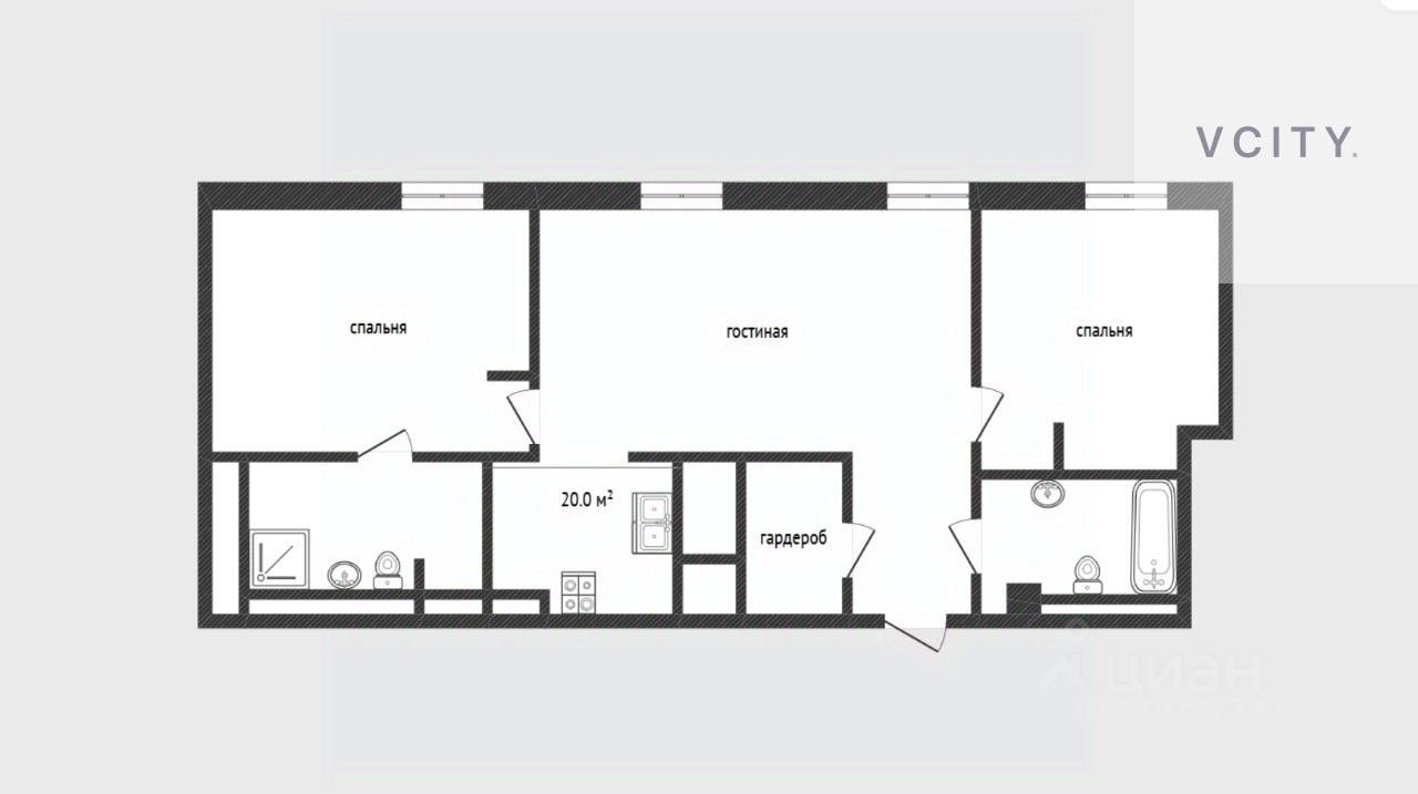 ПРОДУМАННАЯ ПЛАНИРОВКА - на площади 69,4 м разместились 2 спальни, кухня - гостиная, 2 санузла (ванная и душевая кабина), гардеробная и конечно здесь нет узких коридоров и косых углов