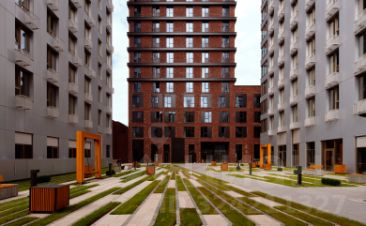 Жилой комплекс выполнен в современной архитектуре бюро APEX: здания от 4 до 21 этажа с выразительными фасадами в антрацитовых и светло-серых оттенках. Входные группы — стильные авторские лобби до 9 м с зонами отдыха, кофе-пойнтом и ресепшеном