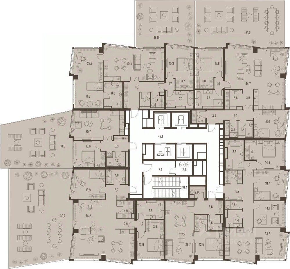 3-к квартира квартира в премиальном комплексе HIGH LIFE на 2-м этаже в 24 этажном здании. Общая площадь 148.1 кв. м.