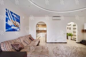 • Планировочное решение: просторная кухня, гостиная с выделенной спальной зоной, гардеробная, холл с встроенными системами хранения, совмещённый санузел с ванной и душевой кабиной