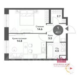 Id 56099. Продаются апартаменты общей площадью 42,1 кв.м. в комплексе бизнес-класса Voxhall.
