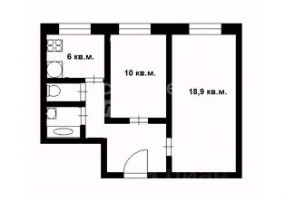 К продаже предлагается уютная и теплая двухкомнатная квартира общей площадью 44,3 кв. м. Квартира включает изолированные комнаты площадью 18,9 кв. м и 10 кв. м, а также кухню площадью 6 кв. м. Санузел в квартире раздельный.