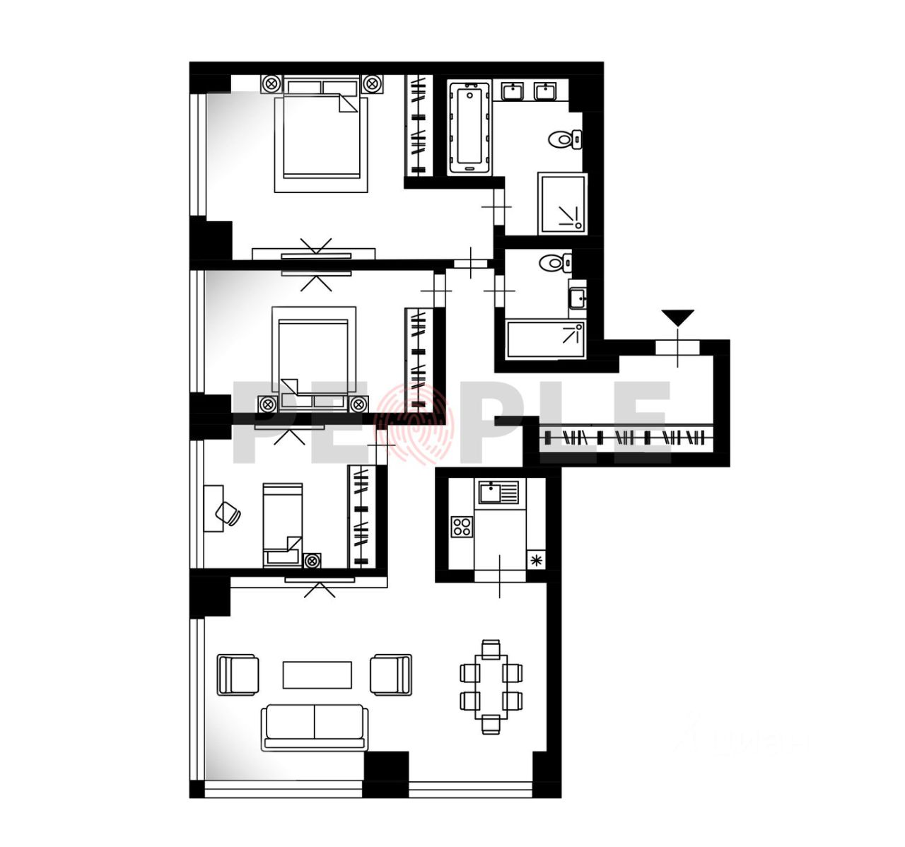 Квартира с 3 спальнями в ЖК "Prime Park" с отделкой White Box