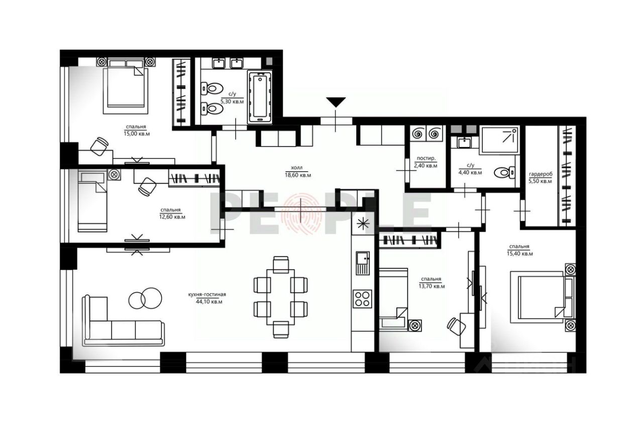 Просторная квартира с 4 спальнями в ЖК "Prime Park" с дизайнерской отделкой
