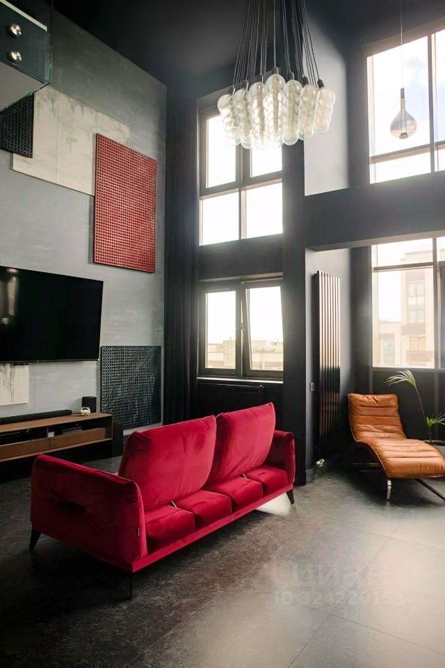 В квартире остается мебель: диван, два кресла, шезлонг, мебель рабочей зоны, прихожая, консоль, книжный стеллаж, барные стулья. Так же, вся встроенная мебель и техника, а также телевизор.