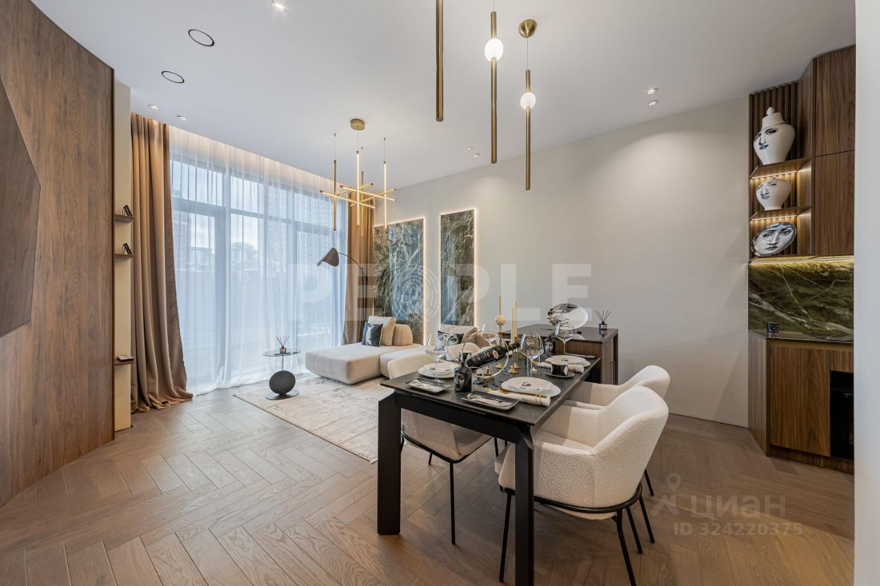 Современные системы освещения и стеновые панели из дерева добавляют особый шарм. Техника от ведущих европейских производителей, включая винный шкаф, гарантирует комфорт и надежность. Из окон квартиры открываются живописные виды на прогулочную зону у реки, что делает каждое утро особенным.