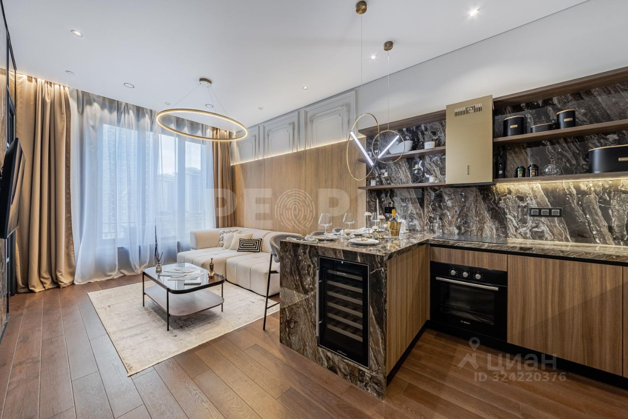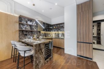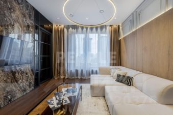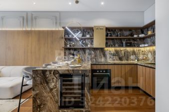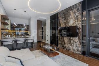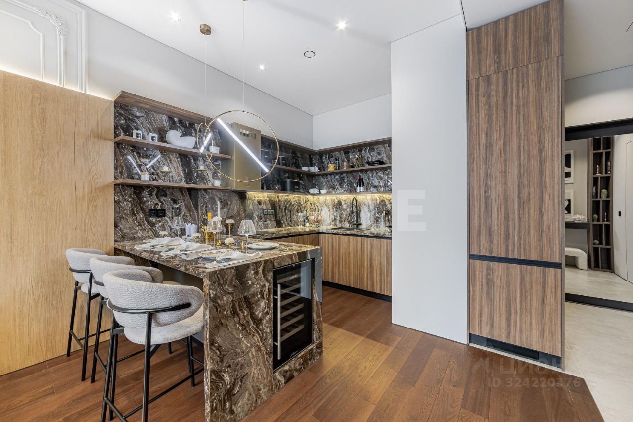 В отделке квартиры использованы натуральные материалы: дерево и камень, которые создают атмосферу уюта и гармонии. Мебель выполнена по индивидуальному заказу, подчеркивая эксклюзивность интерьера. Современные системы освещения и стеновые панели из дерева добавляют особый шарм. Техника от ведущих европейских производителей гарантирует комфорт и надежность.