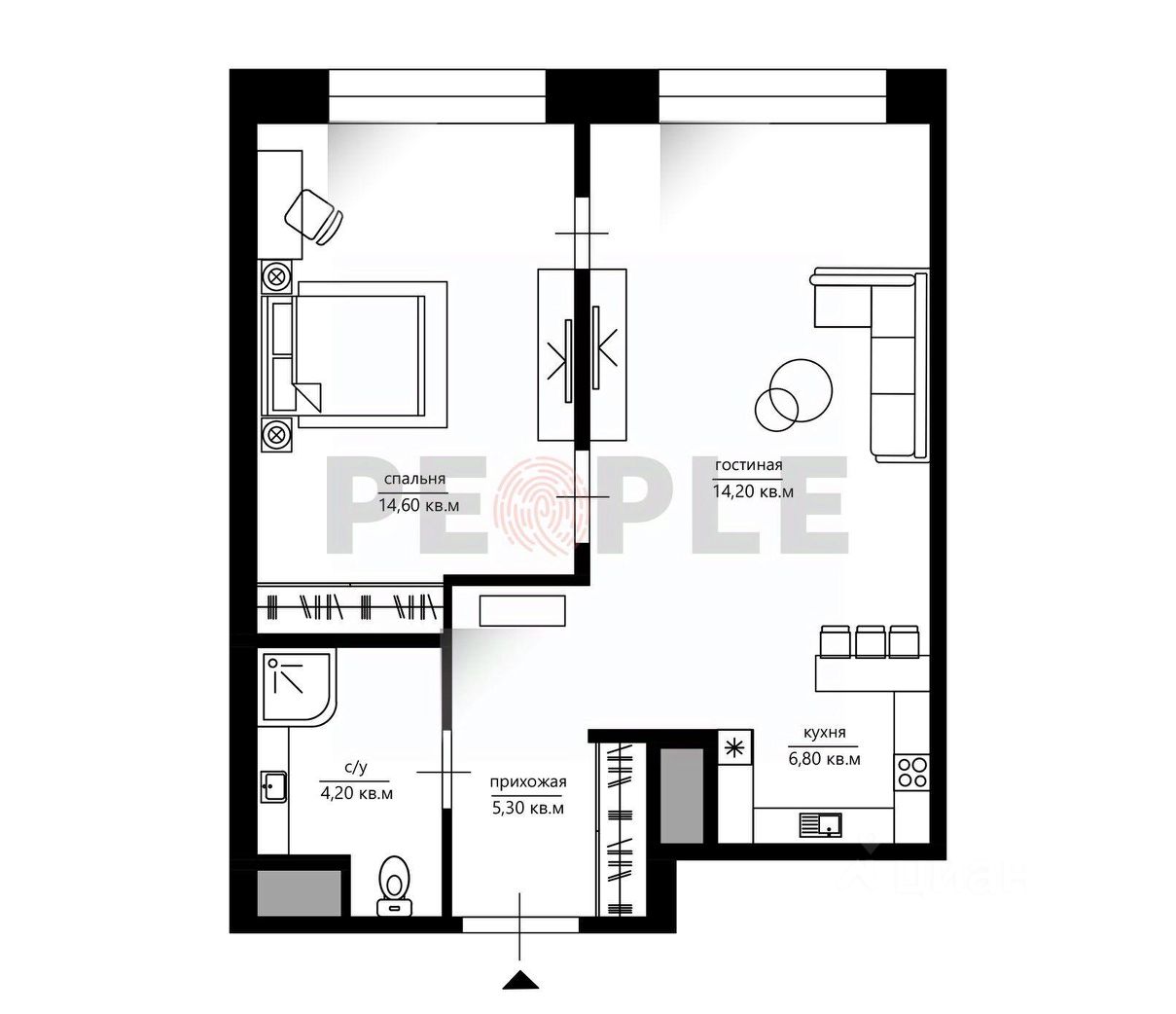- 1 спальня