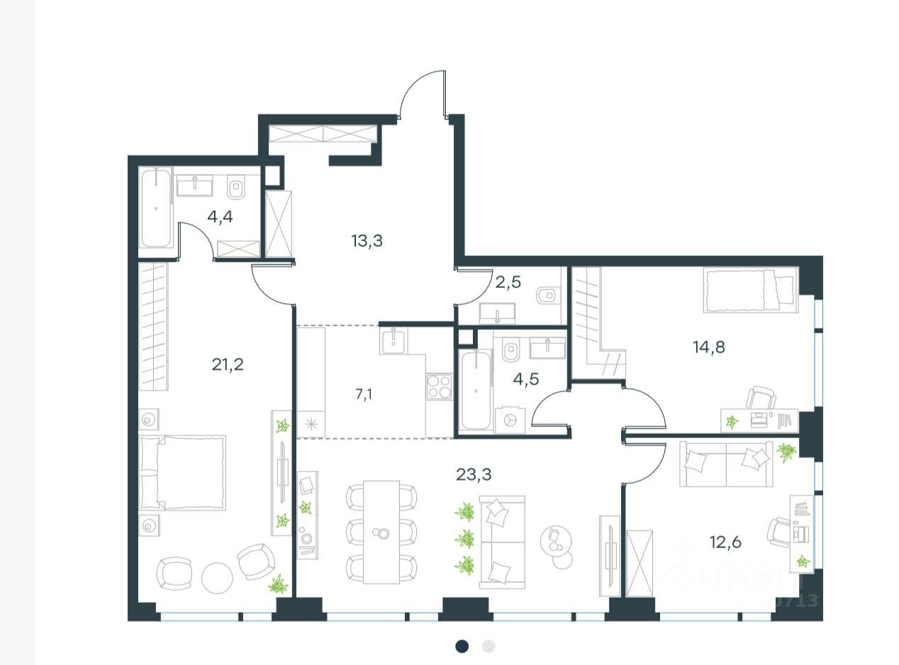 Квартира предлагается без ремонта, что даёт отличную возможность воплотить все ваши дизайнерские идеи и создать интерьер вашей мечты. В квартире три отдельных санузла, что будет удобно для большой семьи или гостей.