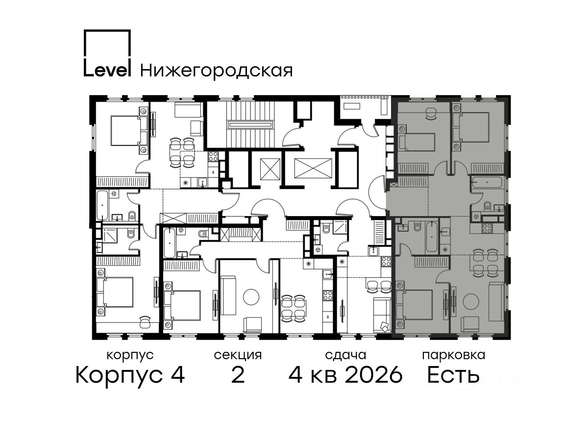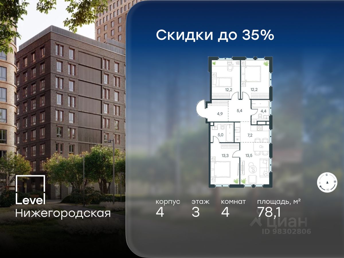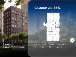 В активно развивающемся районе на юго-востоке столицы продается 4-комнатная квартира площадью 78,1 кв.м без отделки.. Квартира расположена на 3 этаже 9-этажного этажного корпуса 4 в жилом комплексе комфорт-класса Level Нижегородская (компания Level Group/Левел групп).