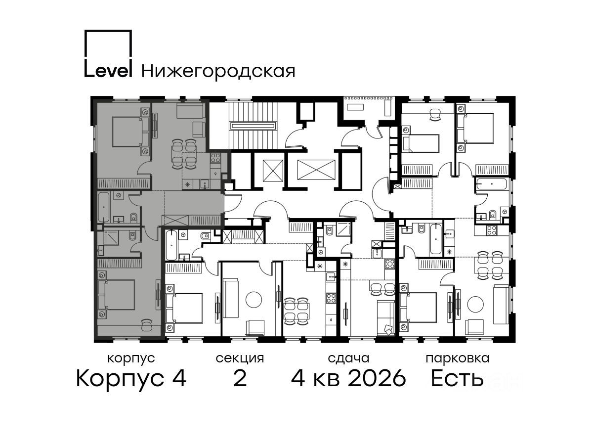 Цена указана с учётом скидки при 100%-й оплате, несубсидированной ипотеке, рассрочке (кроме программы "Рассрочка 0%"). В активно развивающемся районе на юго-востоке столицы продается 3-комнатная квартира площадью 66,7 кв.м без отделки.. Квартира расположена на 2 этаже 9-этажного этажного корпуса 4 в жилом комплексе комфорт-класса Level Нижегородская (компания Level Group/Левел групп). Отличная транспортная доступность - 10 мин. пешком до станции метро, МЦД-4, БКЛ и МЦК "Нижегородская"; - 13 мин. пешком до станций метро "Андроновка" и "Перово"; - 10 мин. на авто до ТТК; - 14 мин. на авто до Садового кольца. Благоустройство Благоустроенная территория комплекса делится на внешнюю и внутреннюю. Внутренняя часть - это закрытый двор 0,9 га, где обустраиваются детские площадки для разных возрастных групп, беседки для отдыха и работы, несколько спортивных зон, включая воркаут-зоны и лужайку для бадминтона. Здесь же появится ухоженный луг с прогулочными маршрутами. Рядом с жилым комплексом будет создан ландшафтный парк площадью 2,4 га. В парке будут высажены высокие деревья, луговые травы и кустарники, благоустроены лаунж-зоны у пруда, дорожки для бега и прогулок. В центре парка предусмотрена событийная площадь, рядом расположатся дополнительные спортивные и детские площадки, а также зона для выгула домашних питомцев. Внутренняя инфраструктура Дома жилого комплекса будут оснащены коммерческими помещениями, где откроются все необходимые сервисы: магазины, аптеки, салоны красоты, кофейни, службы доставки и многое другое. Комфорт - это когда всё рядом. Кроме того, на территории Level Нижегородская предусмотрен подземный отапливаемый паркинг. Этап 1 включает 335 машино-мест и 143 кладовых помещения для хранения сезонных вещей. Технологии и безопасность На территории всех общественных зон постоянно ведется видеонаблюдение и предусмотрен высокоскоростной Wi-Fi. Подъезды, паркинг и внутренний двор оснащены системой контроля доступа. Для удобства жителей создано мобильное приложение, позволяющее связаться с управляющей компанией, осуществлять удаленное управление видеодомофоном или просмотреть изображение отдельных видеокамер по заявке. Для безопасного перемещения по этажам и комфортного спуска в паркинг будут установлены современные лифты от компании BLT Brilliant Elevator. Скорость лифтов - 1,6 - 2,5 м/с. Особенности - Архитектура от экспертов из бюро ARCH(E)TYPE; - Разноуровневая застройка - от секций средней этажности до высоток в 45 этажей (этап 1); - Окна шириной до 2,2 метров (этап1) с видами на Останкинскую башню, Измайловский парк, "Москва-Сити" и Кусковский лесопарк; - Лобби с окнами в пол и потолками от 3,4 метров, оснащенные консьерж-сервисом; - Более 35 видов планировок, включая редкие форматы. Артикул 4-2-4.