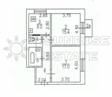 - комнату 2 15,4 м² с остекленным балконом 0,6 м²
