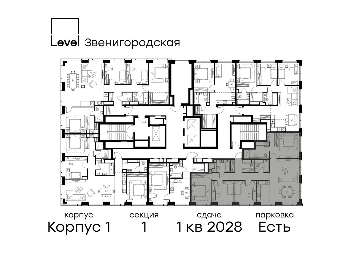 В жилом квартале продаётся многокомнатная квартира площадью 115.70 кв.м white box. Квартира расположена на 48 этаже 48 этажного корпуса 1 в жилом комплексе комфорт класса Level Звенигородская (компания Level Group/Левел групп).