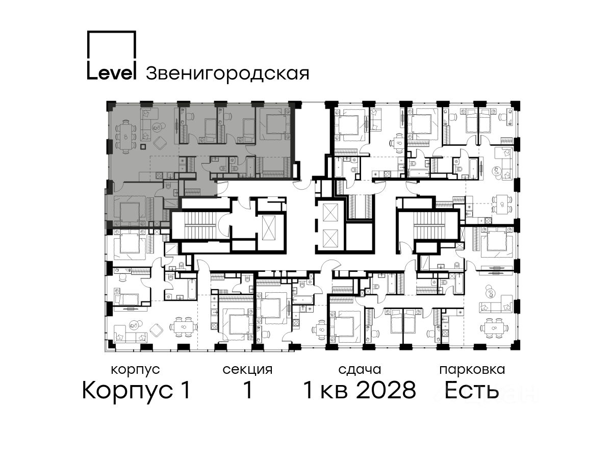 В жилом квартале продаётся многокомнатная квартира площадью 117.30 кв.м white box. Квартира расположена на 36 этаже 48 этажного корпуса 1 в жилом комплексе комфорт класса Level Звенигородская (компания Level Group/Левел групп).