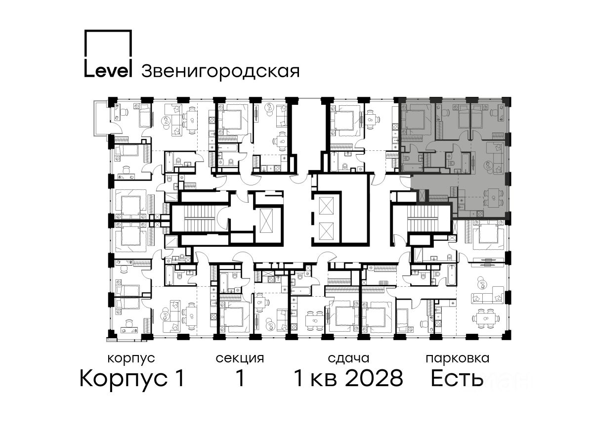 В жилом квартале продаётся 4-комнатная квартира площадью 79.30 кв.м white box. Квартира расположена на 25 этаже 48 этажного корпуса 1 в жилом комплексе комфорт класса Level Звенигородская (компания Level Group/Левел групп).