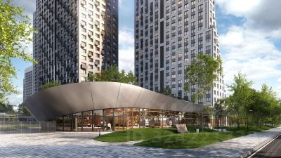 В жилом комплексе откроется 21 коммерческое помещение: продуктовые лавки, кафе, салоны красоты, службы доставки и творческие студии.