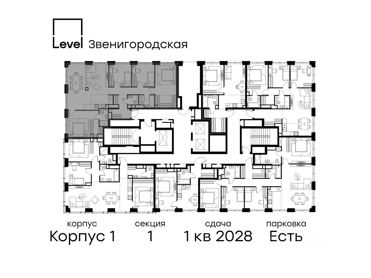 В жилом квартале продаётся многокомнатная квартира площадью 116.00 кв.м white box. Квартира расположена на 32 этаже 48 этажного корпуса 1 в жилом комплексе комфорт класса Level Звенигородская (компания Level Group/Левел групп).