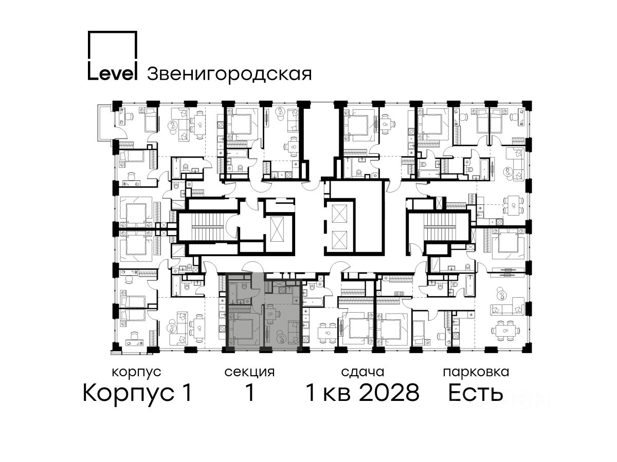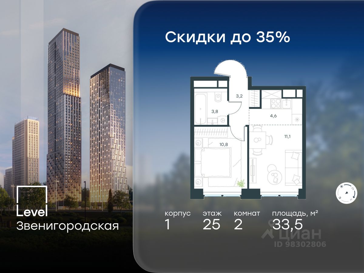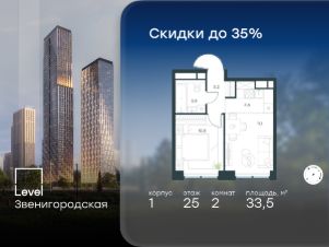 В жилом квартале продаётся 2-комнатная квартира площадью 33.50 кв.м white box. Квартира расположена на 25 этаже 48 этажного корпуса 1 в жилом комплексе комфорт класса Level Звенигородская (компания Level Group/Левел групп).