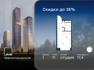 В жилом квартале продаётся студия площадью 17.40 кв.м white box. Квартира расположена на 11 этаже 48 этажного корпуса 1 в жилом комплексе комфорт класса Level Звенигородская (компания Level Group/Левел групп).