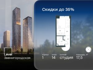 В жилом квартале продаётся студия площадью 17.50 кв.м white box. Квартира расположена на 14 этаже 48 этажного корпуса 1 в жилом комплексе комфорт класса Level Звенигородская (компания Level Group/Левел групп).