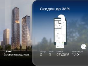 В жилом квартале продаётся студия площадью 18.60 кв.м без отделки. Квартира расположена на 3 этаже 64 этажного корпуса 2 в жилом комплексе комфорт класса Level Звенигородская (компания Level Group/Левел групп).