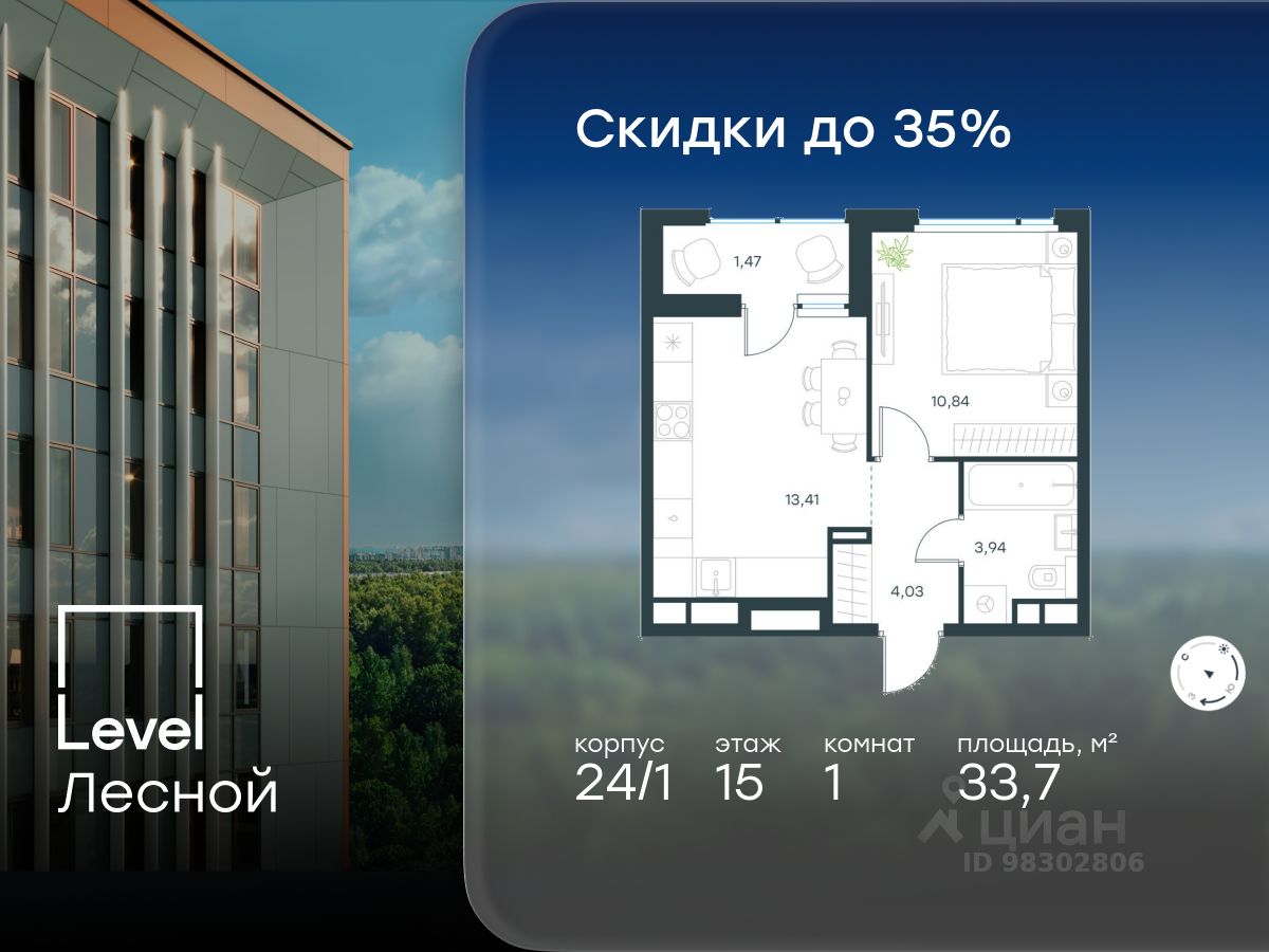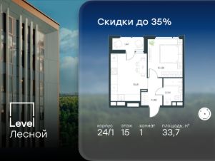 В районе, утопающем в густой зелени лесов, многочисленных парков и скверов, продаётся 1-комнатная квартира площадью 33.70 кв.м без отделки. Квартира расположена на 15 этаже в жилом комплексе комфорт-класса Level Лесной (компания Level Group/Левел групп).