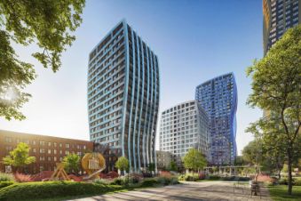 На первых этажах жилого комплекса откроются магазины, салоны красоты, фитнес-центр. Для детей строятся собственные детский сад и школа.