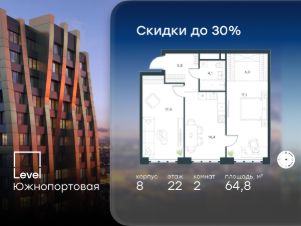 В северной части района Печатники продается 2-комнатная квартира площадью 64.80 кв.м без отделки. Квартира расположена на 22 этаже 49-этажного корпуса 8 в жилом комплексе комфорт-класса Level Южнопортовая (компания Level Group/Левел групп).