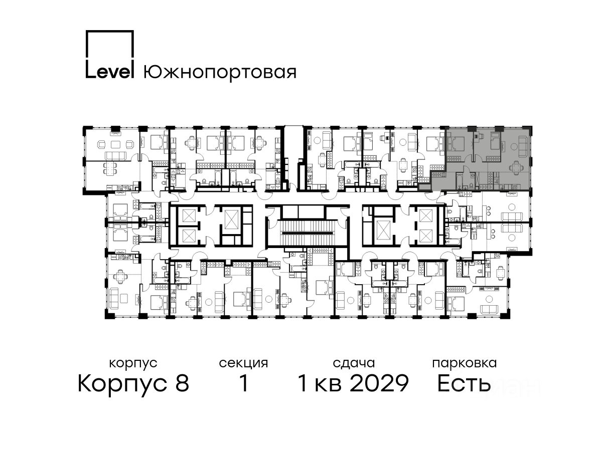 В северной части района Печатники продается 3-комнатная квартира площадью 64.90 кв.м без отделки. Квартира расположена на 43 этаже 49-этажного корпуса 8 в жилом комплексе комфорт-класса Level Южнопортовая (компания Level Group/Левел групп).