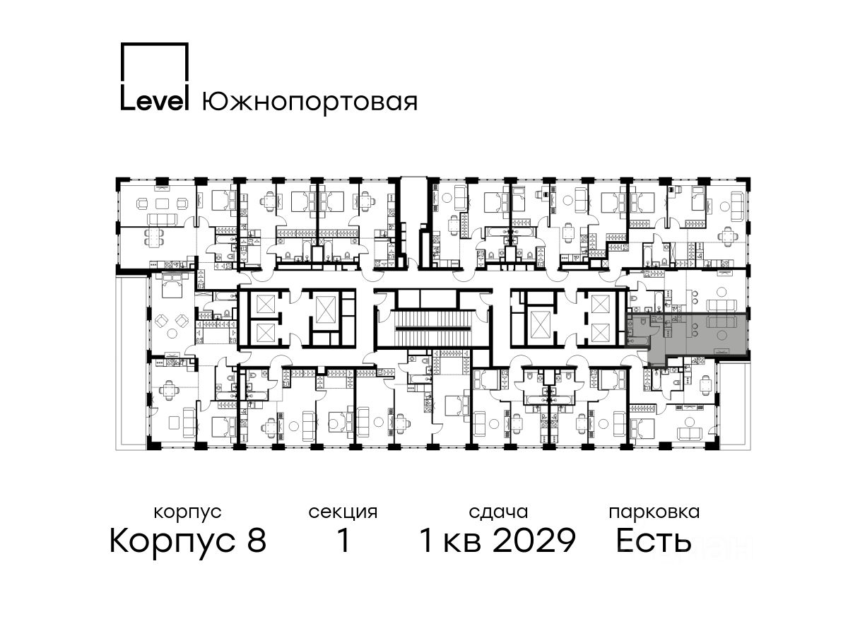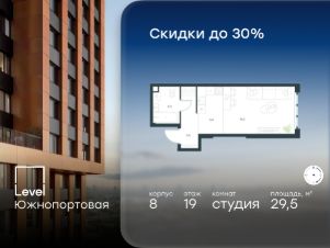 В северной части района Печатники продается студия площадью 29.50 кв.м без отделки. Квартира расположена на 19 этаже 49-этажного корпуса 8 в жилом комплексе комфорт-класса Level Южнопортовая (компания Level Group/Левел групп).