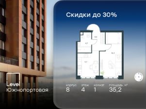 В северной части района Печатники продается 1-комнатная квартира площадью 35.20 кв.м без отделки. Квартира расположена на 4 этаже 49-этажного корпуса 8 в жилом комплексе комфорт-класса Level Южнопортовая (компания Level Group/Левел групп).