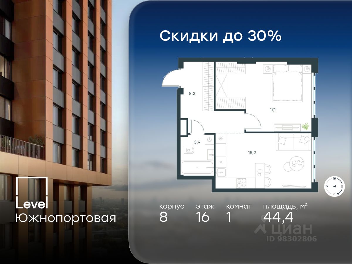 В северной части района Печатники продается 1-комнатная квартира площадью 44.40 кв.м без отделки. Квартира расположена на 16 этаже 49-этажного корпуса 8 в жилом комплексе комфорт-класса Level Южнопортовая (компания Level Group/Левел групп).
