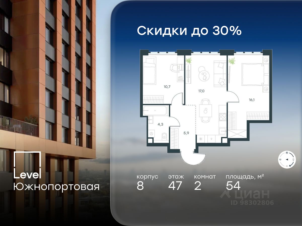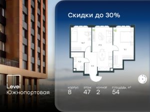 В северной части района Печатники продается 2-комнатная квартира площадью 54.00 кв.м без отделки. Квартира расположена на 47 этаже 49-этажного корпуса 8 в жилом комплексе комфорт-класса Level Южнопортовая (компания Level Group/Левел групп).