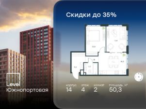 В северной части района Печатники продается 2-комнатный апартамент площадью 50.30 кв.м без отделки. Апартаменты расположены на 4 этаже 13-этажного корпуса 14 в жилом комплексе комфорт-класса Level Южнопортовая (компания Level Group/Левел групп).