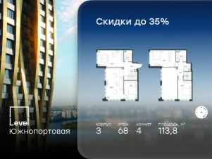 В северной части района Печатники продается 4-комнатная квартира площадью 113.80 кв.м без отделки. Квартира расположена на 68 этаже 68-этажного корпуса 3 в жилом комплексе комфорт-класса Level Южнопортовая (компания Level Group/Левел групп).