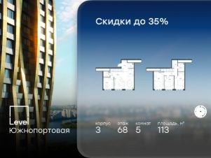 В северной части района Печатники продается многокомнатная квартира площадью 113.00 кв.м без отделки. Квартира расположена на 68 этаже 68-этажного корпуса 3 в жилом комплексе комфорт-класса Level Южнопортовая (компания Level Group/Левел групп).